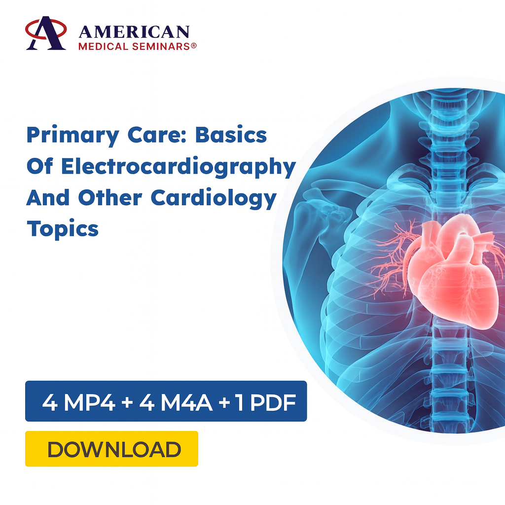 The Primary Care Basics of Electrocardiography and Other Cardiology Topics 2025 program provides a focused, practical, and highly accessible update for clinicians who manage cardiovascular conditions in primary care settings. This comprehensive digital package includes video lectures, audio recordings, and a downloadable syllabus, making it an ideal resource for improving ECG interpretation skills and strengthening your understanding of core cardiology concepts.